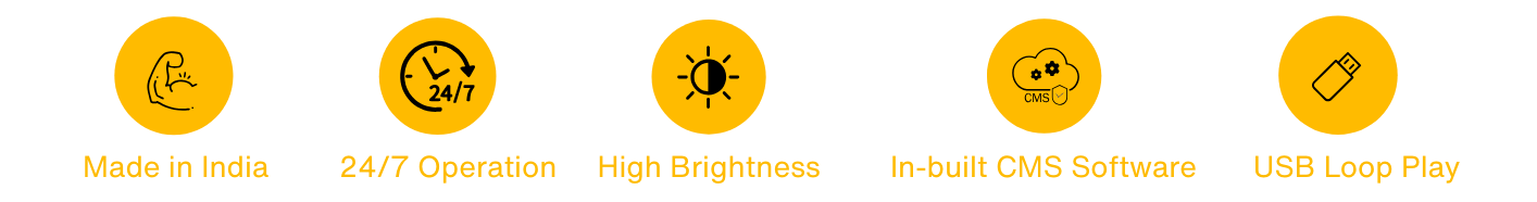 Built for reliability and performance, OSIRIS displays feature anti-glare coating, high brightness, 24/7 operation, USB loop play, and in-built CMS software for seamless content management. Proudly Made in India and backed by a 1-year warranty, our solutions are designed to run round the clock, ensuring uninterrupted engagement and dependable service.